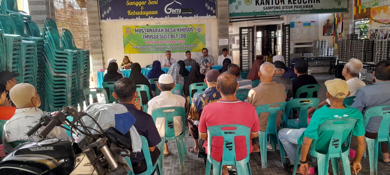 Pemerintah Gampong Ateuk Pahlawan, Kecamatan Baiturrahman, Kota Banda Aceh, melaksanakan Musyawarah Gampong Khusus (Musgamsus) pada Rabu, 14 Januari 2026, bertempat di Kantor Keuchik Gampong Ateuk Pahlawan. Kegiatan ini dilaksanakan sebagai tindak lanjut dari Peraturan Menteri Desa dan Pembangunan Daerah Tertinggal Republik Indonesia Nomor 16 Tahun 2025 Tentang Petunjuk Operasional Atas Fokus Penggunaan Dana Desa Tahun 2026.