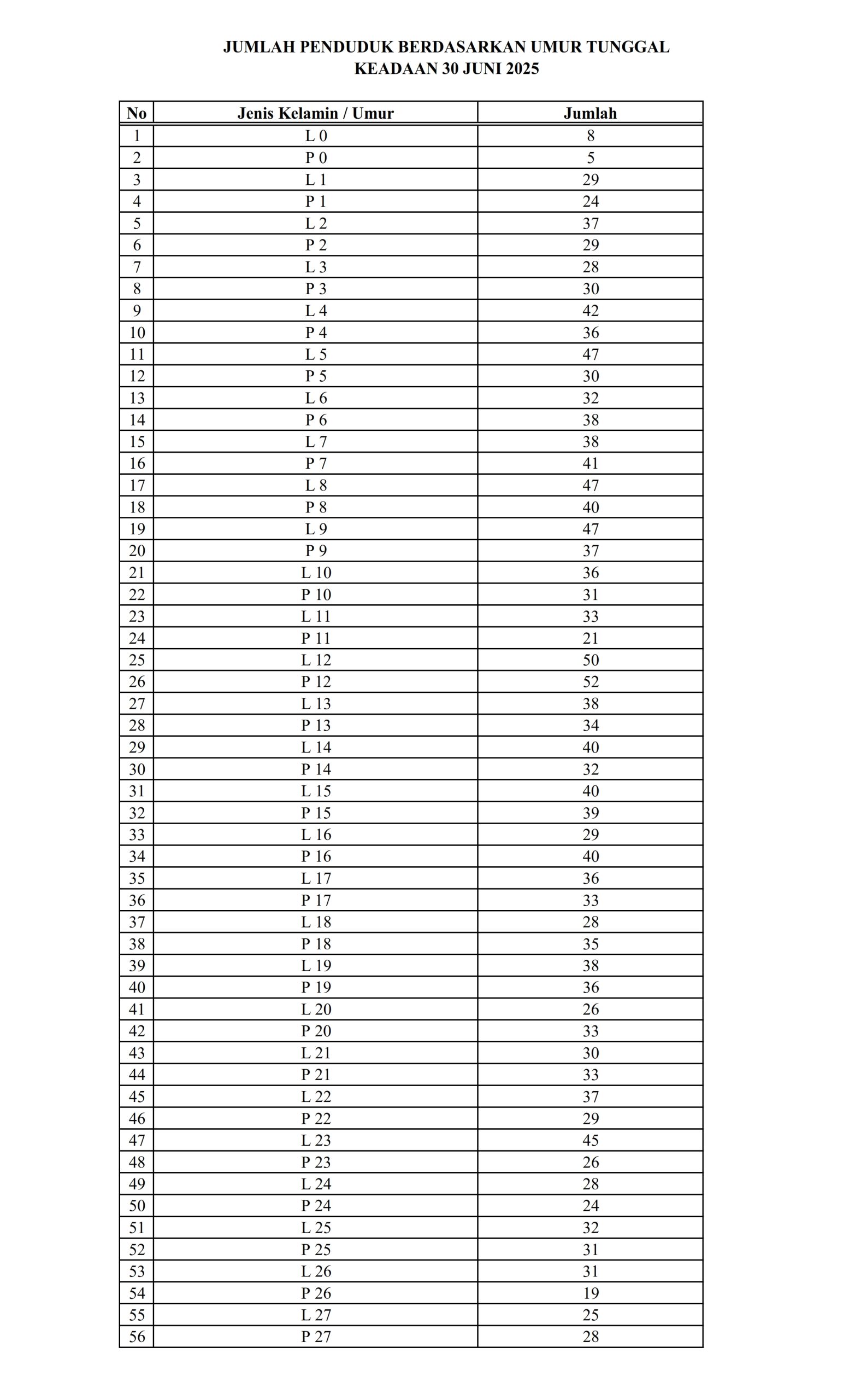 Jumlah Penduduk Berdasarkan Umur Tunggal